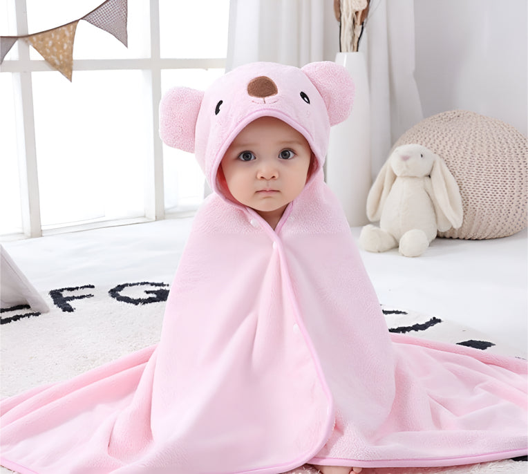 Enveloppez votre bébé de douceur avec cette cape à capuche en forme de petit ourson ! Conçue en tissu éponge ultra-doux, elle est idéale pour sortir du bain, pour les matins frais ou les câlins du soir. Sa capuche amusante avec oreilles d’ours et son tissu moelleux gardent bébé bien au chaud tout en le faisant fondre de mignonnerie. Disponible en rose pastel, bleu ciel et gris doux, elle convient aussi bien aux filles qu’aux garçons.